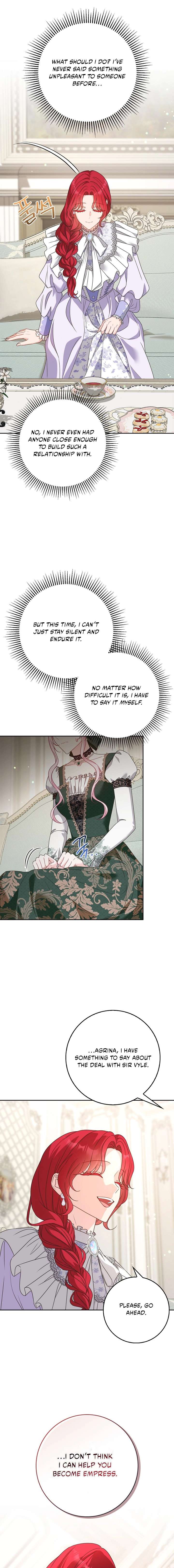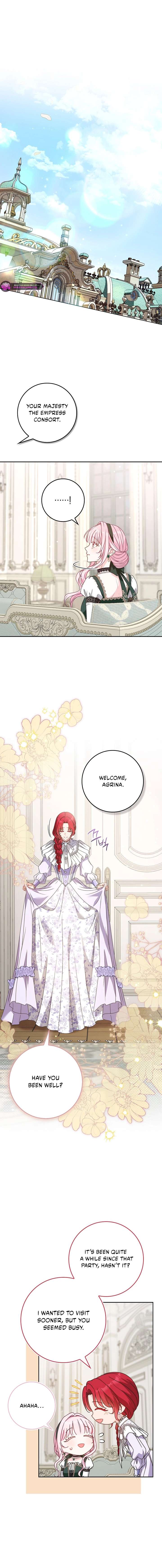 Eh, I think Agrina is testing her here, they might be all smiles in the next chapter who knows. I don’t think she even likes the emperor she just needs the power.